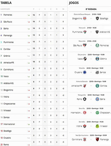 Jogos pela oitava rodada