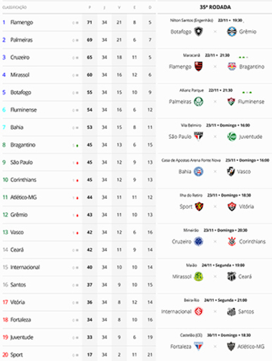 Com os resultados do meio da semana, o Grêmio ocupa a 12ª posição com 43 pontos. Já o Internacional é o 15° colocado com 40 pontos.